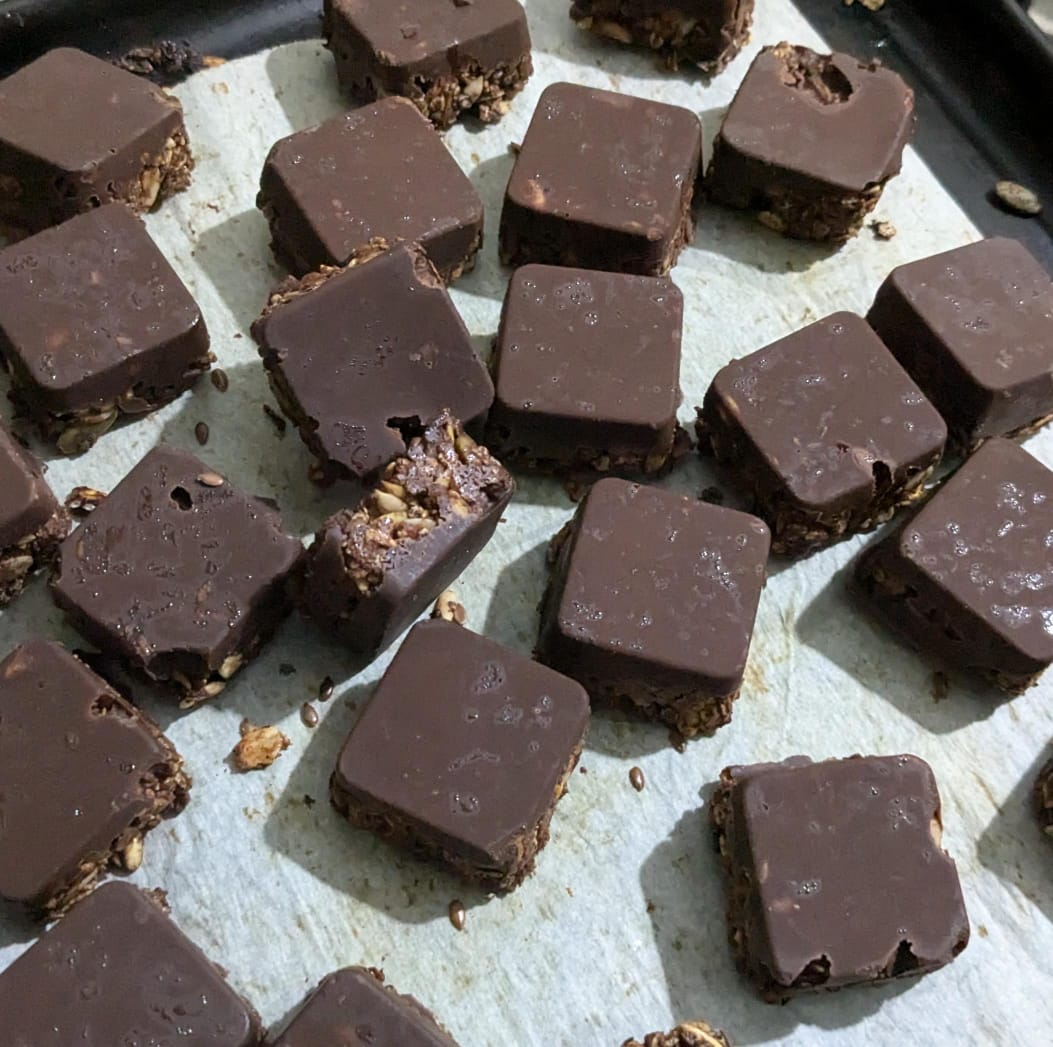 Experience the delightful taste of our Chocolate Ragi Seed Bites! These small cube-shaped snacks pack all the rich flavors and nutritious goodness of our popular Chocolate Ragi Seed Bar in a convenient bite-sized format. Each bite is crafted from rolled oats, ragi crispies, and luscious cacao powder, sweetened naturally with jaggery. With the added crunch of flax seeds, pumpkin seeds, sunflower seeds, muskmelon seeds, and watermelon seeds, these bites offer a satisfying texture and flavor. Finished with homemade chocolate and a touch of vanilla essence, they’re perfect for guilt-free snacking any time of day!